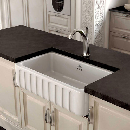 We sell double glazed fine fireclay single bowl or double bowl ceramic Butler sinks as well as Belfast Sinks and French Farmhouse ceramic sinks which have a smooth side or ribbed front finish. These elegant luxury sinks are perfect for the classic traditional or country farmhouse design style but are increasingly being used in contemporary kitchen and laundry designs. Butler sinks come in different models some are suitable for counter top, under counter or recessed installation. Together with a goose neck Kitchen tap or tapware in special finishes such as rumbled brass or an organic copper finish help complement the look.