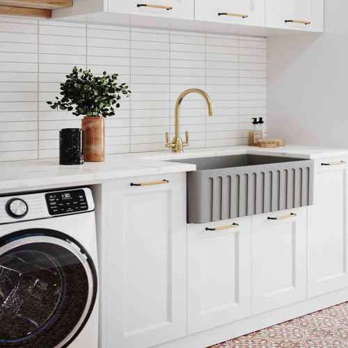 When you are designing a new bathroom or kitchen or renovating an existing room, incorporate your ideas into your new décor with a few well-thought-out choices. There are certain features and special touches within any space that really make the room pop, and a butler kitchen sink can be one of them. With the exposed outer edge and the large style of basin, butler sinks offer a light and eye-catching element that won’t go unnoticed. The elegance of a kitchen, laundry or bathroom butler sink tends to elevate the overall aesthetics of your room by drawing the eye to a space that would otherwise be seemingly uninteresting. Butler sinks are also a great way to showcase your designer tapware for a stunning overall effect.