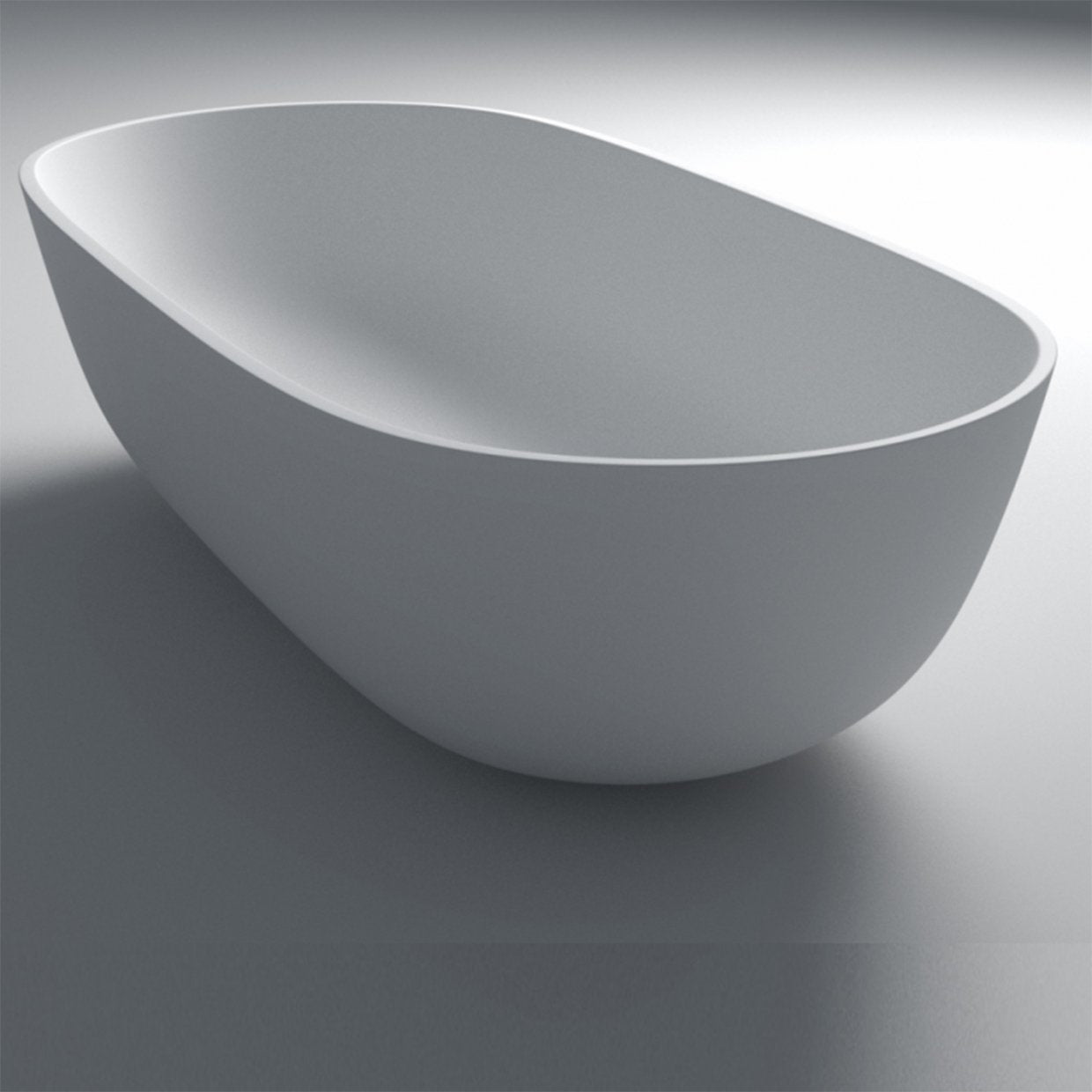 The Pebble X stone composite freestanding bath is a statement in design. The Pebble X bathtub looks and feels more solid than acrylic baths and has an elegant smooth flowing oval organic shape with a matte finish.