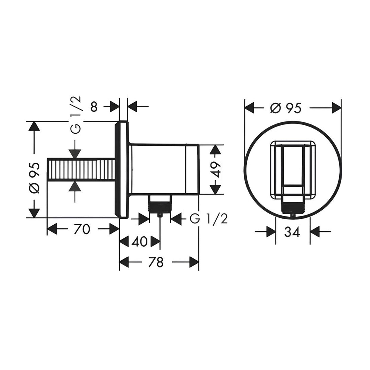 The Porter S features a round plate design that combines both the handshower holder and water inlet in a single, compact unit. This means you don’t need a separate wall elbow, offering a sleek and space-saving solution for modern bathrooms.