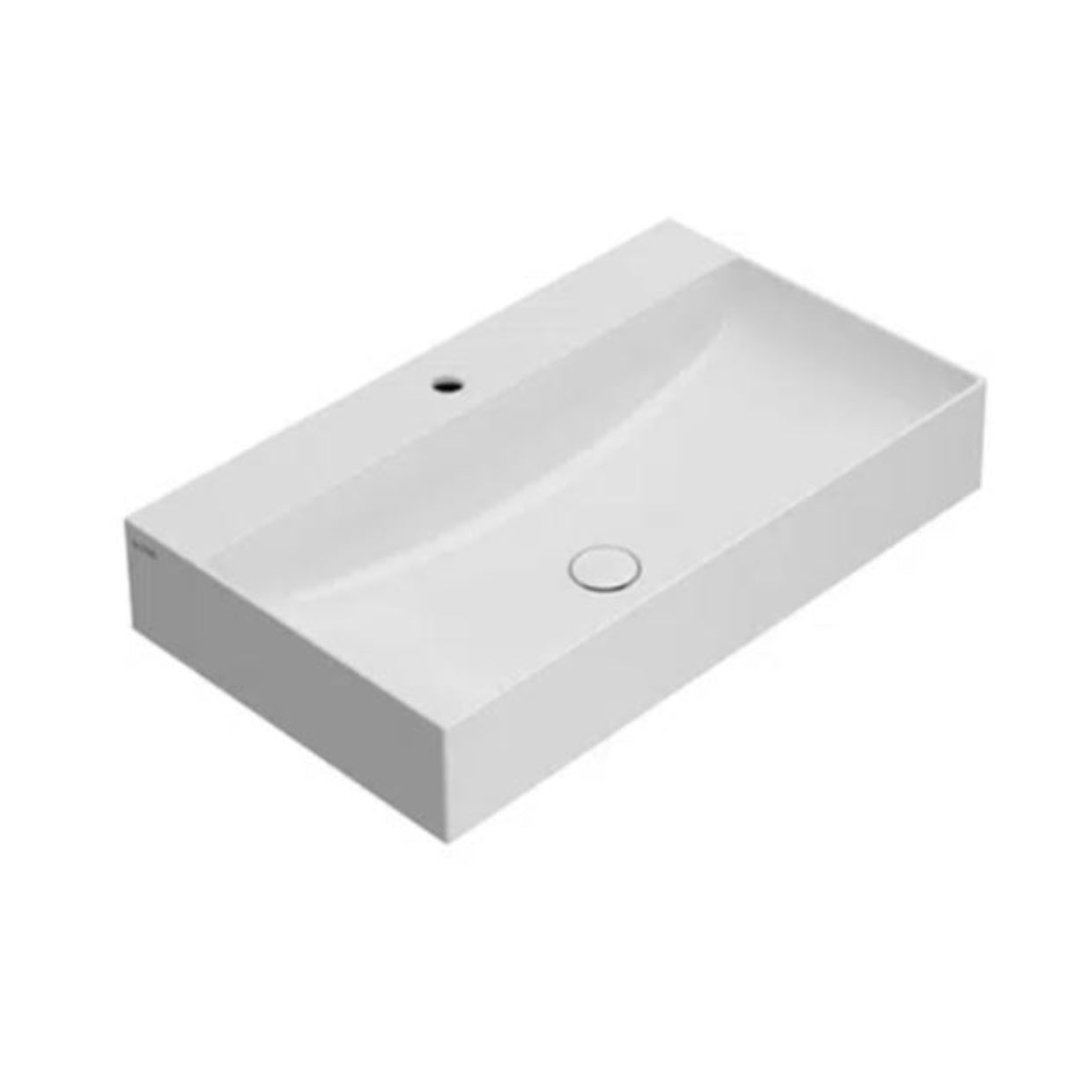 No overflow. Wall-hung or sit-on installation. Fixing kit included