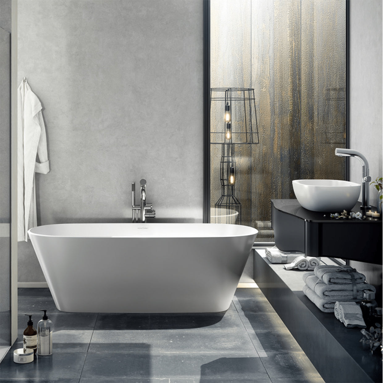 A modern bath for a modern bathroom. Vetralla 2 is deep and double-ended with generous volume. Also offered in a smaller format called Vetralla. Available in seven optional external paint finishes
